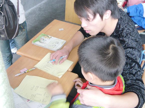中午12点,志愿者们在校门口集合,满怀期待地来到大契向阳小学,开始了一天的助教生活。那里的孩子们非常可爱和热情,他们天真而质朴的笑容给志愿者印象深刻。当天下午的主要课程有美术、音乐、体育和品德。课堂上孩子们都很活跃,也很开心。课堂上志愿者们和他们一起唱歌、画画、做游戏……这个活动不仅仅给了我们的志愿者一个锻炼自我的舞台,使志愿者自己的能力有所提高,还给孩子们带去了一份开心和快乐。他们脸上的微笑是多么地天真无邪,童年是多么地快乐,我们的志愿者更应用我们的爱心去温暖他们幼小的心灵。