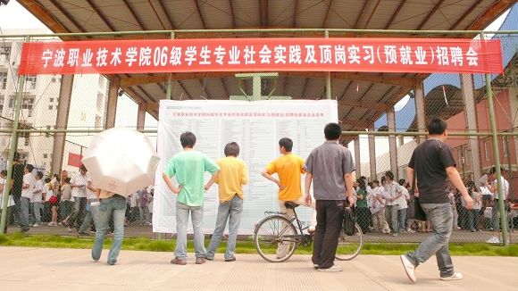 6月7号上午9点,宁波职业技术学院的校园内人潮涌动,一个个招聘摊位前排起了长队。我院06级学生专业社会实践及顶岗实习(预就业)招聘会在东校区风雨篮球场火热举行。