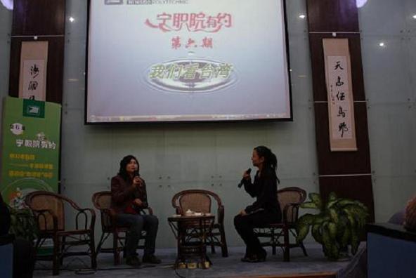 12月4日晚18:30分,第六期《宁职有约》之我们看台湾―宁职师生访问团“台湾行”访谈在我院明德楼105举行。据悉,此次台湾访问团成员共有27名学生,而今天的访谈邀请到了朱炯舟、应天?、毛柳盛三名代表,畅谈了他们台湾行的切身感受,让全院领导老师以及大一大二学生一起共同分享了他们的8天的特殊经历。