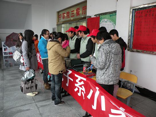 3月5日,电子系青年志愿者冒着寒风和大雨,在东校区食堂门口拉开了“小家电维修专场”学雷锋活动。