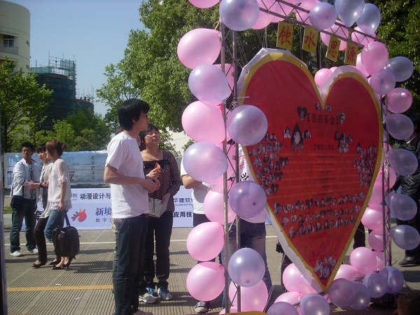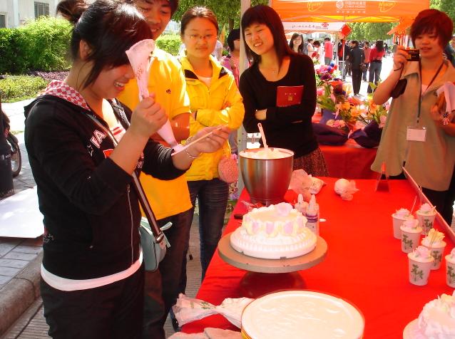 电子系的展台同样吸收了一大批的眼球,而他们的绝招则是那些自制的电子产品。自动感应式引路机,非常可爱的娃娃音响,智能报警器,各式各样的电路板,这些高科技电子产品全都是由电子系的学生在老师的指导下自主设计并制作的。优惠的价钱、精美的作工、可爱的外观、再加上电子系志愿者的精彩的解说,吸引了一大批的同学的采购,而义卖现场,所有工作人员忙得不亦乐乎,场面十分火爆,每一位顾客