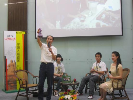 谈到对行程的感受时,应老师激动地说,他们是凌晨5:05到达机场的,但意想不到的是德国友人早已在出机口等候多时,细细算来,应老师发现德国友人在晚上12:00左右就已出发,半夜行车近6小时准时接机。另外,令应老师难忘的是,同德国学子共同动手制作太阳钟、面包的两场特色活动项目,面包是自己亲手制作的,德国友人经过精美包装后把它送到我国学子手中,让学生吃到自己亲手制作的面包,享受乐趣!最后,应老师向师生们介绍了自己最惊喜的一件事,在他参观一家玻璃作坊时,尝试了一次吹花瓶,但意想不到的是,在离别的前一天晚上,花瓶竟出现在自己眼前,并且德国友人把它送给了应老师,应老师讲到此事时,幸福与喜悦在他脸上流露。