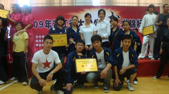 由浙江省教育厅、浙江省体育局主办的2009年浙江省大学生武术锦标赛于5月24日在温州医学院顺利落下帷幕。本次比赛共有40所院校参赛,其中高职类院校19所,我院共有8名队员参加了16个单项比赛的角逐。本次比赛,我院选手共获得15个单项奖。其中,喜获金牌2枚,银牌2枚,铜牌5枚,男女团体双双获得第三名。