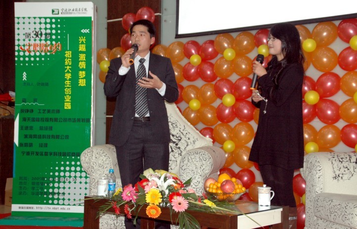 王进忠,2003年毕业于宁职院计算机应用技术专业,并在2008年完成上海同济大学工商管理专业远程教育本科学业,现依旧在浙江大学高级工商管理总裁班进修,作为滨海网络科技有限公司的创始人和总经理,他认为是学校为他种下创业的种子,让他拥有创业的梦想。于是带着对创业的美好憧憬和在工作期间积累的丰富经验,开始了他的创业之路。在了解到我院数字科技园区对本校学生的各种政策后,他毅然把办公室搬了过来。他说:“对于自己所喜爱的要懂得去钻研,不管毕业后是否创业,至少要术业有专攻。”当今社会经济不景气,也使得大家丧失了良好的心态,无法提起激情去工作,但他不同,他不怕磨难,不怕失败,他早就准备好用至少两年的时间去学习和摸索。他表示:学院大学生创业街和数字科技园区都为学生们提供了良好的创业平台,学生要有主动的意识去做事,通过同学间的合作以及向老师请教完成一些项目的建设 从而提升实践能力。尽管在创业中有许多困难,但是他一直相信老师的那句话“方法总比困难多”。
