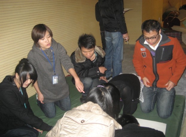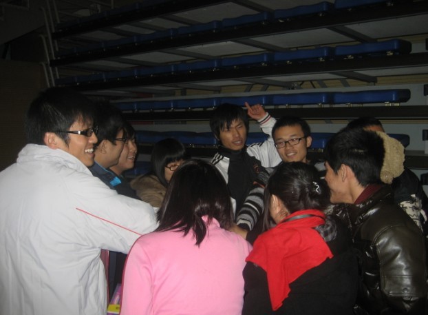 同样为了增进团学部门之间的感情,加强团结。昨日下午,励宁书记带着团委、学生会的各部门负责人以及各分院系的主席进行了一场别样的素质拓展。活动中,他们各小组随机组合,并且在最短的时间内,互相了解,互帮互助,组建队名、队歌、队训,进行比赛。