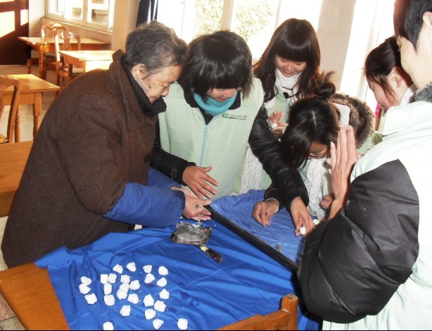 临近中午的时候,志愿者和老人们一起包起了汤圆,团团圆圆,合合满满,老人们高兴的合不拢嘴。
