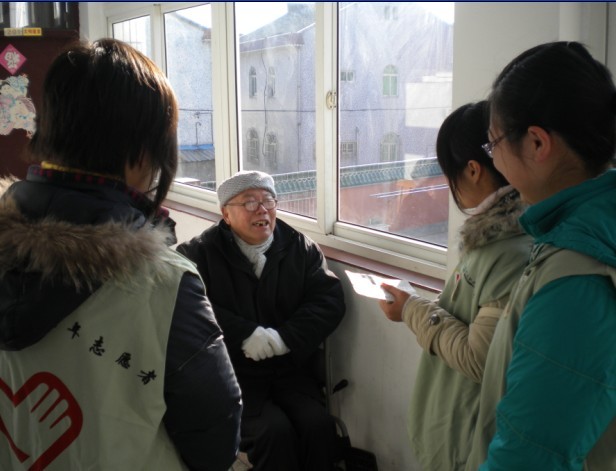 志愿者们和老人一起聊天、下棋,给老人们捶腿、揉肩,并帮忙晒被子等,整个院内好不热闹。一位女同学在看到老爷爷困难的剪指甲时,主动的过去帮忙。她的仔细,感动了老人。老人看着她,感慨地说“你们这些孩子都太好了,现在条件也比我们那个年代好很多了,你们一定要好好学习,将来回报社会啊。”
