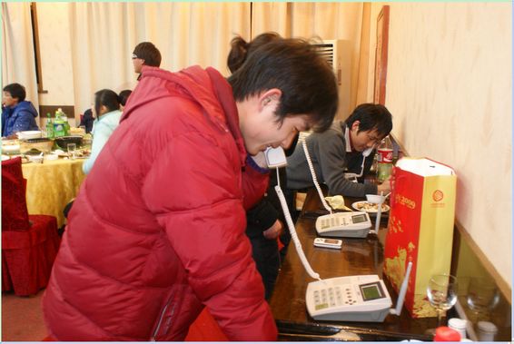 除了这顿丰盛的年夜饭之外,每位就餐的宁职院大学生还收到了学校发给他们的“红包”,并有机会免费拨打亲情电话。原来,食堂里实现装了两部电话机,当晚留校生都可以再次免费给家里打长途,跟远方的爸爸妈妈报声平安,说一声新年好。