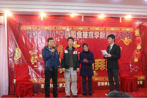 昨日,我院学工部、后勤、团委联合举办“‘2010暖春’宁波职业技术学院留校大学生新春团拜会”。学院副院长张学库,学院党委副书记史习明,院学工部部长何明友,院武装部部长高维彪,院学工部副部长龚友国及各系党总支副书记出席了本次新春团拜会。