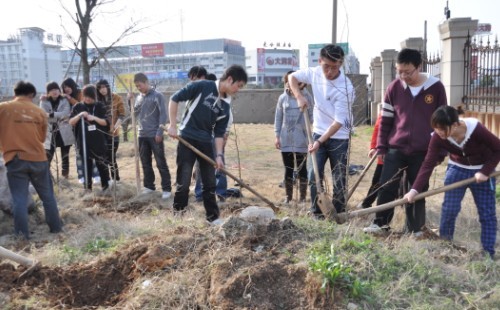 为了绿化校园,营造更好的学习环境和生活空间,全面落实科学发展观,在3月12日这个特殊的日子里,我院后勤部沈老师和社团联环保协会共同组织开展了“与大树在一起”的主题植树活动。