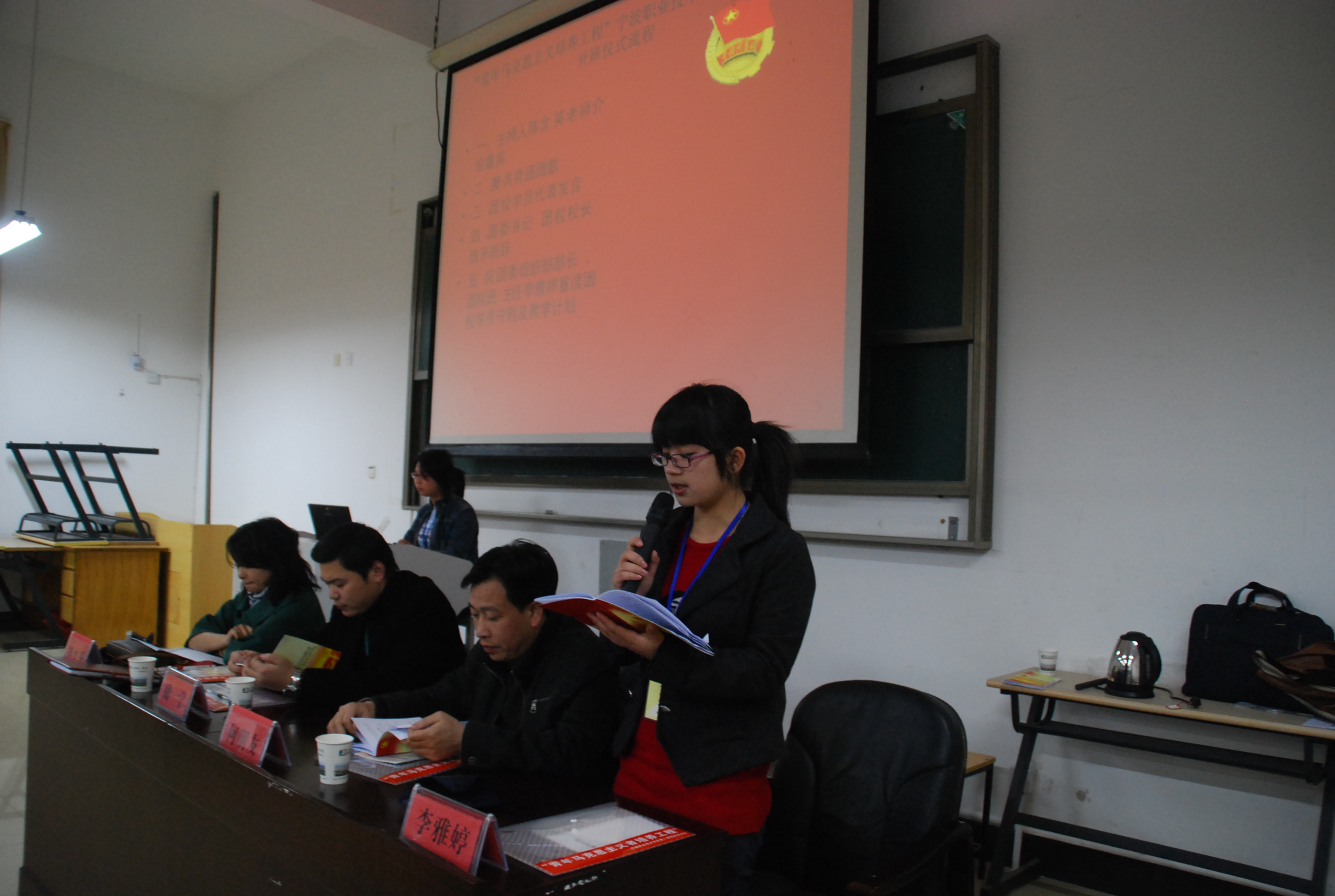 开班仪式在洪亮的共青团团歌中拉开序幕,院团委组织部干事黄一诺代表全体团校学员发言:首先,她鼓励大家为过去的一学年鼓掌,也为今后的自己鼓掌。团校的建设给了我们渴望知识进步地同时也给予我们渴望思想的成熟,而团校正是给了我们前人的经验与思考,从而成为一个锻炼品德意志,提高思想觉悟的大课堂。展望团校学习,她笑着说道:“做为共青团的一员,我们应该遵守共青团章程,切实履行团员的义务。要遵照团组织布置的工作任务,不折不扣的履行团员义务,要以为同学服务为根本宗旨,起到引导,组织,协调的作用。” 院团委书记励宁老师作为团校的校长为本次开班仪式致开幕词:“我很高兴今天在这里又看到了一张张充满朝气的脸希望你们能通过本次团校培训,好好体会在这个过程中的所想所的,逐渐学会独立和资助,学会对自己的人生和未来负责,以积极健康的心态去面对学习和生活,主动帮助同学,勇敢面对挫折,扮演好人生的角色。”同时,励宁老师也给予我们能在团校学习期间把握机遇,勤奋学习,培养自身能力,不断创新,全面提升自我,做一个创新型人才。