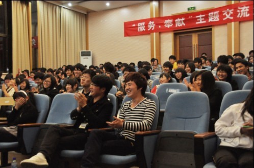 为了让更多的同学了解学生会各部门成功组织大型活动赛事的背后故事,构建一个新生与老生, 新生与新生互相交流展现自我的平台,提高宁职院学生会干部整体素质,更好构建校园文化主体。2010年4月24日,一场以“服务、奉献”为主题的交流恳谈会在西校区小阶梯教室隆重举行。参加本次活动的有各系的学生会主席,学生会优秀干事和15名代表。