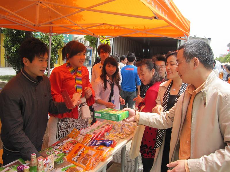 创业街上人头攒动,而最为火爆的则是“管理系休闲吧”。货架上的土特产供不应求,营销专业同学尽显专业魅力,热情的为大家推销,异乡的学子亦体会到了独特的家乡味道。