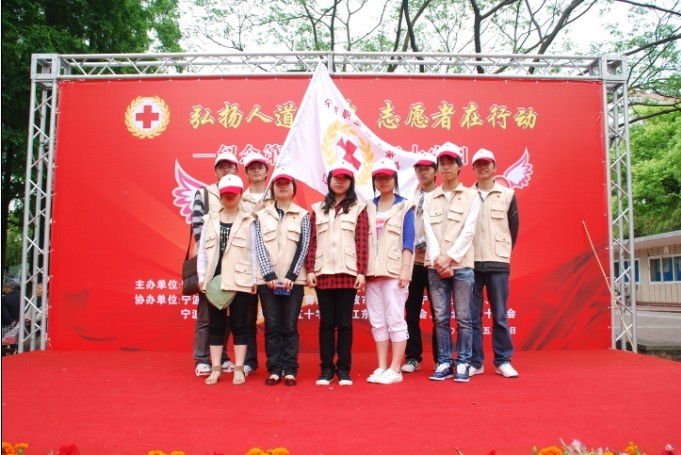 为纪念第63个5.8世界红十字日,进一步弘扬“人道、博爱、奉献”的红十字精神,宁波市红十字会主办,市卫生局等单位联合协办的以“弘扬人道精神,志愿者在行动”为主题的2010年有关世界红十字日纪念活动于5月8日上午在海曙公园隆重举行,我院的十名志愿者代表参与其中。