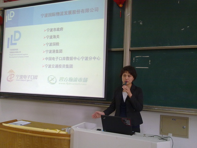 5月27日下午,宁波服务外包学院招生宣传活动在明德楼103举行。莅临此次活动的有宁波国际物流发展股份有限公司总经理叶春凤女士,管理系副主任沈文天副教授、管理系物流管理专业、市场营销专业、电子商务专业大二学生共计150名学生参加了此次活动。