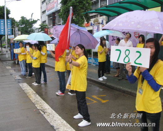 北仑新闻网讯(记者 袁力波 通讯员赵飞平)6月4日上午,下着雨,在宁波职业技术学院公交站台开起了一朵朵伞花,伞花下活跃着30多个黄色的身影,他们举着公交线路的牌子,引导等车的乘客上下车,并热心地替他们打伞遮雨。这些“小黄衣”是宁职院会计系的在校学生,这也是北仑公交公司联合宁职院会计系团委开展的“公交文明出行百日示范”活动的一项内容。