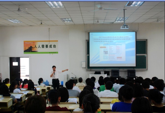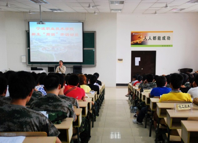 动员大会开始前,陈含英老师带领入学不久的新生唱起了宁职院的校歌《向着太阳起航》。大会正式开始后,院党委副书记史习明对脱颖而出的同学表示祝贺,并强调宁职院的目标是培养企业首选的人才,宁职院是一个教人如何成功的地方,每位同学一定要以成功者的心态对自己严格要求。在适应大学生活的一周里思考自己的未来,找到成功的方法。宁职院之所以采取自主招生,是因为想发现同学们身上可塑造的因素,同时史书记希望大家能够阅读《改变人生的一堂课》这本书,并认真做好读书笔记。