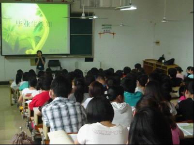 李老师就学生切身利益出发,对有关形势、相关手续等事项做出了详细的讲解。并且结合实际,耐心地向我们解释了《就业协议书》与《劳动合同》的区别,有针对性的讲解与指导使得广大即将面临毕业的同学们的心态有了很好的调解,也将他们对就业初期的迷茫程度降到了最低,对就业趋势有了更清醒的认识。随后,李老师对户口转移、学生档案等一系列可能遇到的问题作了系统化的讲解,让同学们大开眼界。最后,李老师送给大家一些至理名言,激励鼓舞着同学们,并告知掌握命运的方法很简单,远离懒惰就行;快乐很简单,少一点苛求就行;生活很简单,懂得珍惜、自然面对,就会拥有人生色彩!