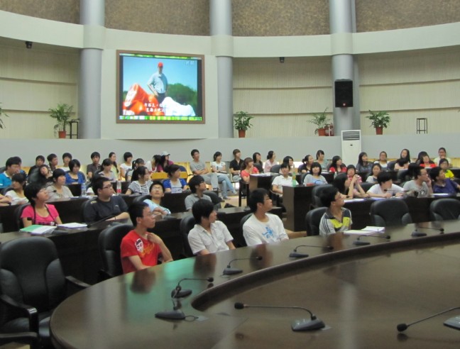 接下来的是本次交流会的主要环节,由08级优秀学生代表同在场的新生分享自己的学习心得。第一位出场的是曾获一等奖学金的08级涉外旅游陈蔓莉同学,通过精彩的PPT播放她向新生们介绍了我们的学院,以及同学们丰富多彩的大学生活。使在场的新生们对未来的大学生活充满乐期待。其后,管理系学生会主席骆海滨同学向新生简单介绍了管理系团委学生会,及工作和活动。还有来自市场营销专业的赵博同学,他跟大家分享了其在校的创业之路,会场气氛热烈而又轻松愉悦。最后,团委书记赖敏雅老师给在场的新生布置暑期调研作业,并再次表示对新生的欢迎。