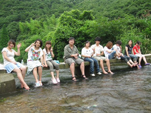大家到了新湖岙村首先吸引大家的是一条清澈见底的小溪,大家见了纷纷跳下河去嬉戏。