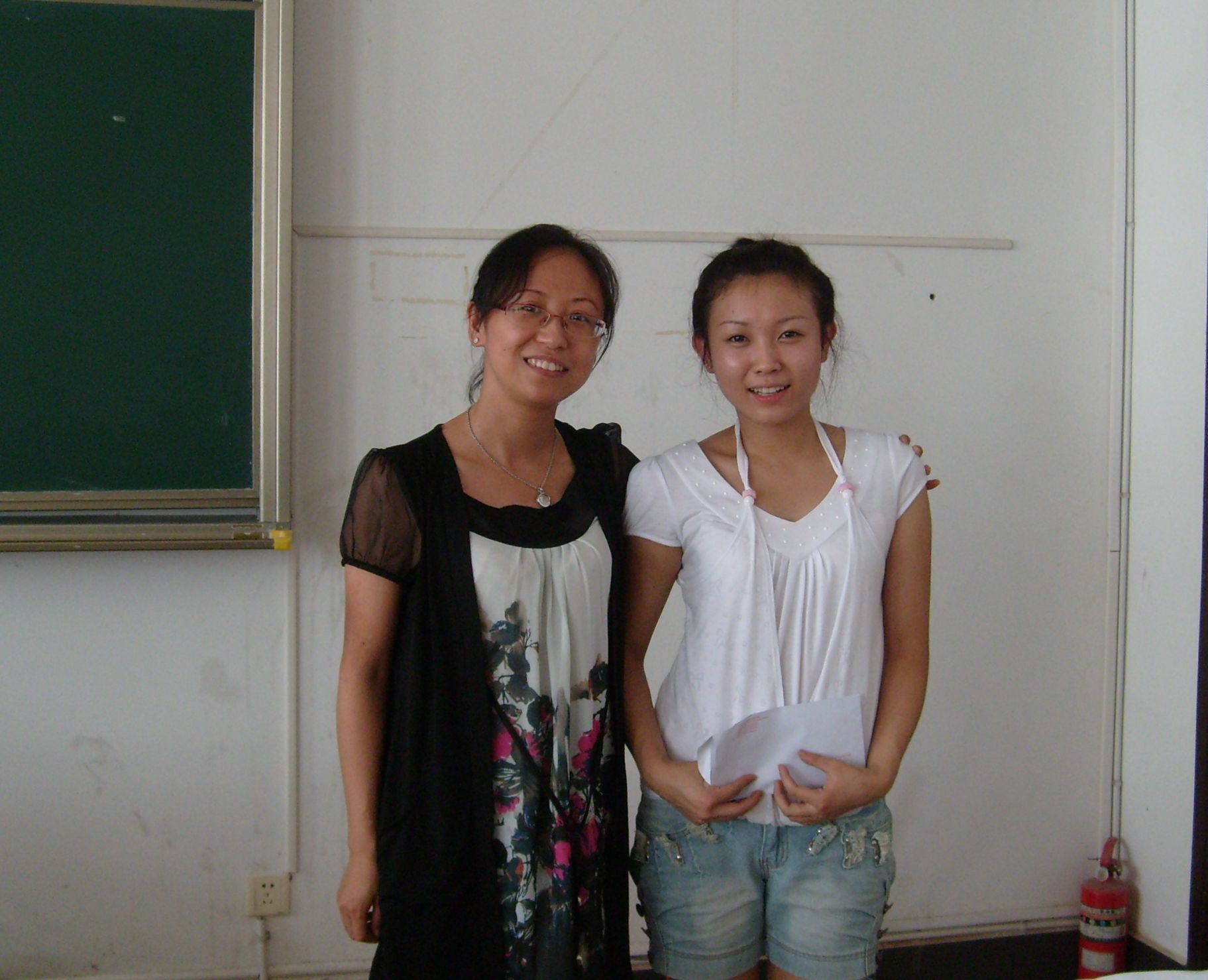 图为:徐莺老师为特困生颁发补助金,并合影留念。