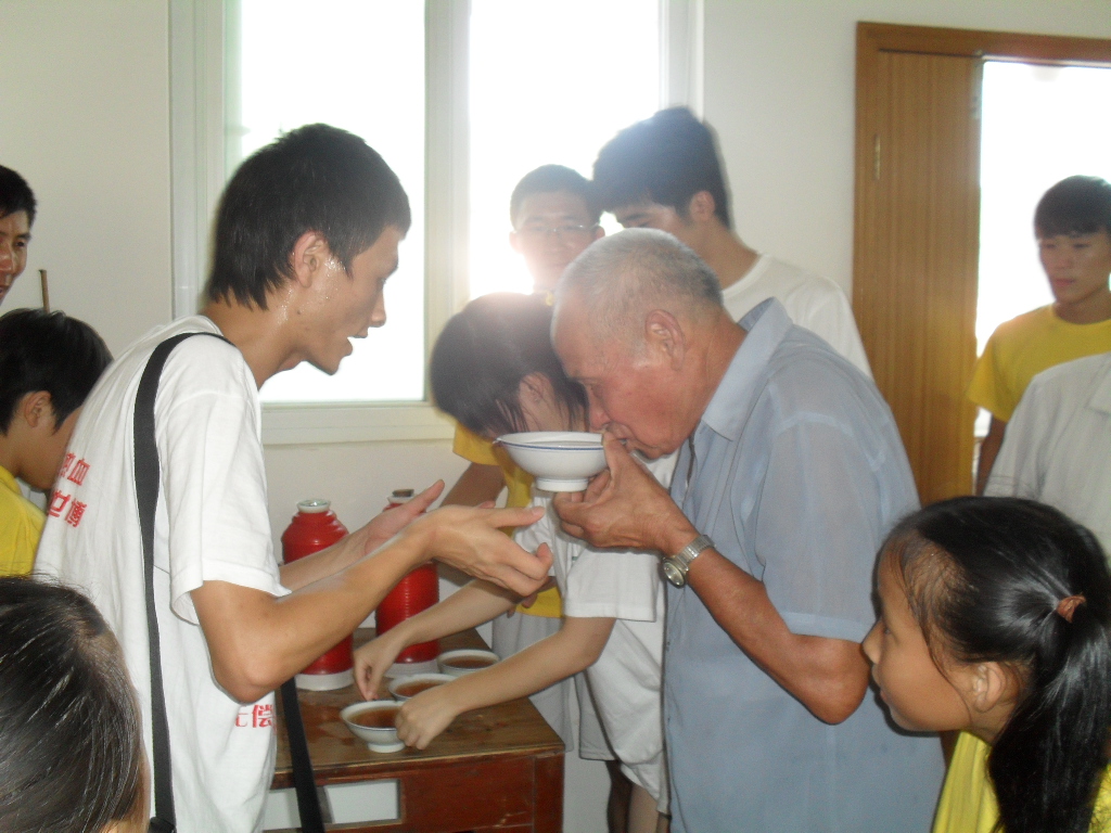 7月19日,宁波职业技术学院春晓支教小分队和海口支教小分队的志愿者们带领着八名暑期班学生,来到了春晓镇老年公寓,为孤寡老人送爱心。