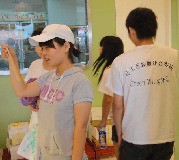 2010年7月29日下午,应用化工系暑期社会实践的同学们为了加强宣传“低碳生活,走进世博”的环保理念,再次走访北仑多家商店,银行等开空调的场所,当时室外温度是34度左右。为了更好的将调查结果进行对比,接着我们对开空调的营业场所进行详细的调查。