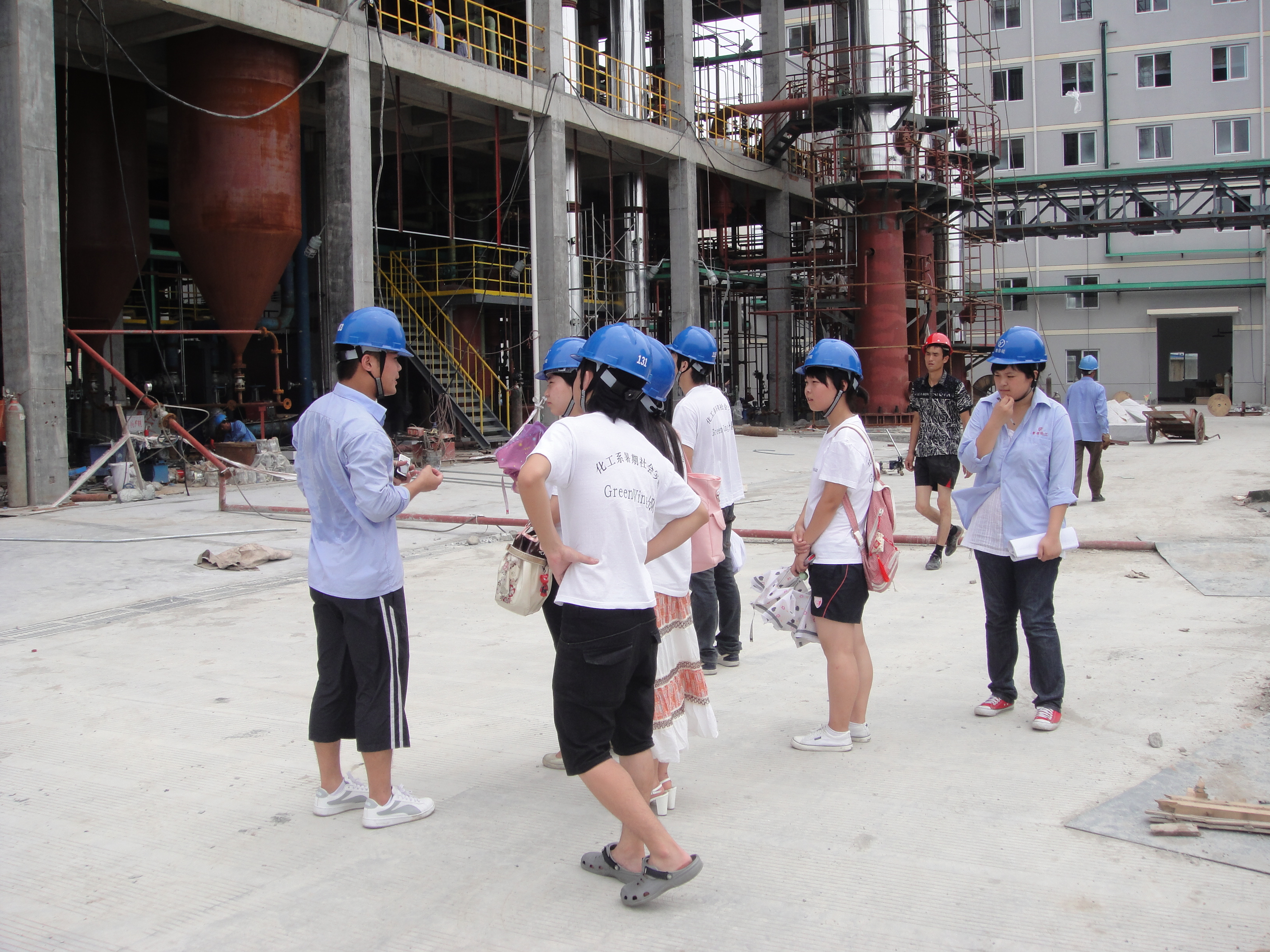 一进化工厂,学长就热情的迎接了志愿者们,让他们带上了安全帽,再三提醒进入化工厂“安全第一”是第一要素。稍有闪失,就会有生命危险。学长学姐们严谨的工作态度,不得不让我们肃然起敬。接着他就向我们简单的介绍了东来化工厂主要生产两种化工产品的各种流程,并且不时的提醒我们,在学期间学好专业基础知识和技能,可以为以后的工作打下坚实的基础,虽然有很多同学认为学校学的知识在以后的工作中是没有用的,但是如果等到工作的时候你就会发现学校的知识是如何的重要。在和学长交谈的过程中,同学们就自己关心的问题各抒己见与学长进行了交流,学长深入浅出的回答了同学们提出的问题,在场的同学都参与了其中,整个谈话气氛融洽。
