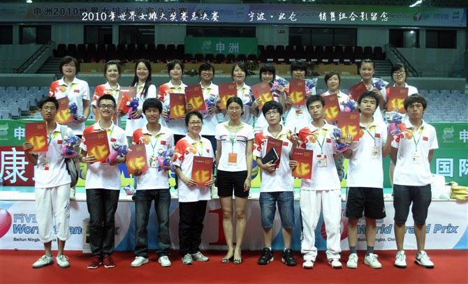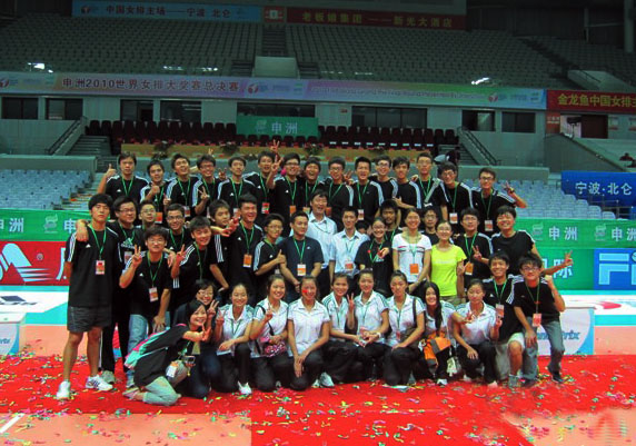 8月29日晚,申洲2010世界女排大奖赛总决赛在宁波北仑体艺中心落下帷幕。我院志愿者顺利完成了大会交予的拖地、捡球、举旗和销售等各项工作,体艺中心乐主任在事后评价我们的志愿者时说道:“作为大学生,理应积极投身社会实践活动,而且你们宁职院的大学生,在这几天的赛事服务中都体现了很高的社会责任感,表现十分出色,给国际友人们和大会组委会的工作人员都留下了很好的印象。”