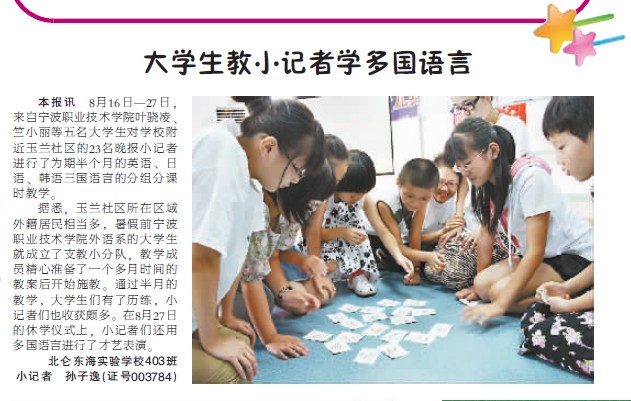 《宁波晚报》:大学生教小记者多国语言