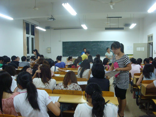 志愿者代表夏晓波则向在场的所有志愿者简要介绍了此次迎新工作的相关情况及注意事项并提出了三点要求:1、注意志愿者的自身形象。志愿者要时刻注意自身的言行举止,注重细节问题,为我系树立良好的形象。2、熟悉学院的基本情况,尤其是新的院系及位置。3、重视安全问题,要时刻把安全问题放在第一位,切勿一人接多个新生。