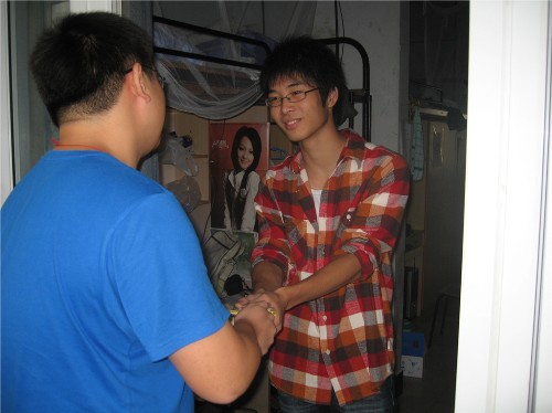 9月22日上午9点半,商贸系团学干事潘斐,冯缘杰一组,蒋铮,徐杭其,孙迪琪为一组,在10号楼集合,并且分配好月饼,拿着留校学生的名单,向每个寝室亲自进行慰问。并且向大一新生们传达了最真诚的节日问候。每一位大一新生也十分感动,并且连声道谢。记得有一个学妹也暗自窃语到:“真是没想到这所学校对我们还真是关心啊,在以前的学校那是从来想不到的啊!”虽然一个月饼是微不足道的,但是其中的感情是无价的。