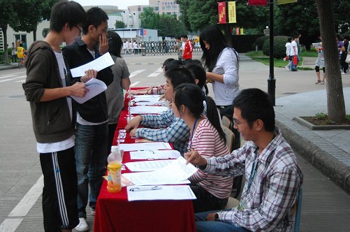 上午10点半左右,我院学生会各部门按照计划展开招新。从招新现场来看,2010届新生对参加院学生会工作的热情度较高,现场气氛热烈,参加面试的同学专业涵盖广泛,包括国际商务、会计、应用化工、动漫设计、模具设计与制造等各专业。院学生会现由办公室、监察部、生活部、体育部、文娱部、宣传部、学习部7个部门组成,各部门均参加了招新。同学们针对学生会招新部门,结合个人特长和兴趣,选择适合自己的部门投递报名表。一位报名宣传部的动漫设计专业同学表示:在高中,自己就已是学生会宣传部的一名干事,通过海报绘画等工作使自己找到了专业学习与开展学生工作的良好契合点。学生会招新将本着公平、公正的原则,挖掘人才,兼顾专业,为广大同学提供施展才华的平台,也为院学生会的持续稳定发展添砖加瓦。