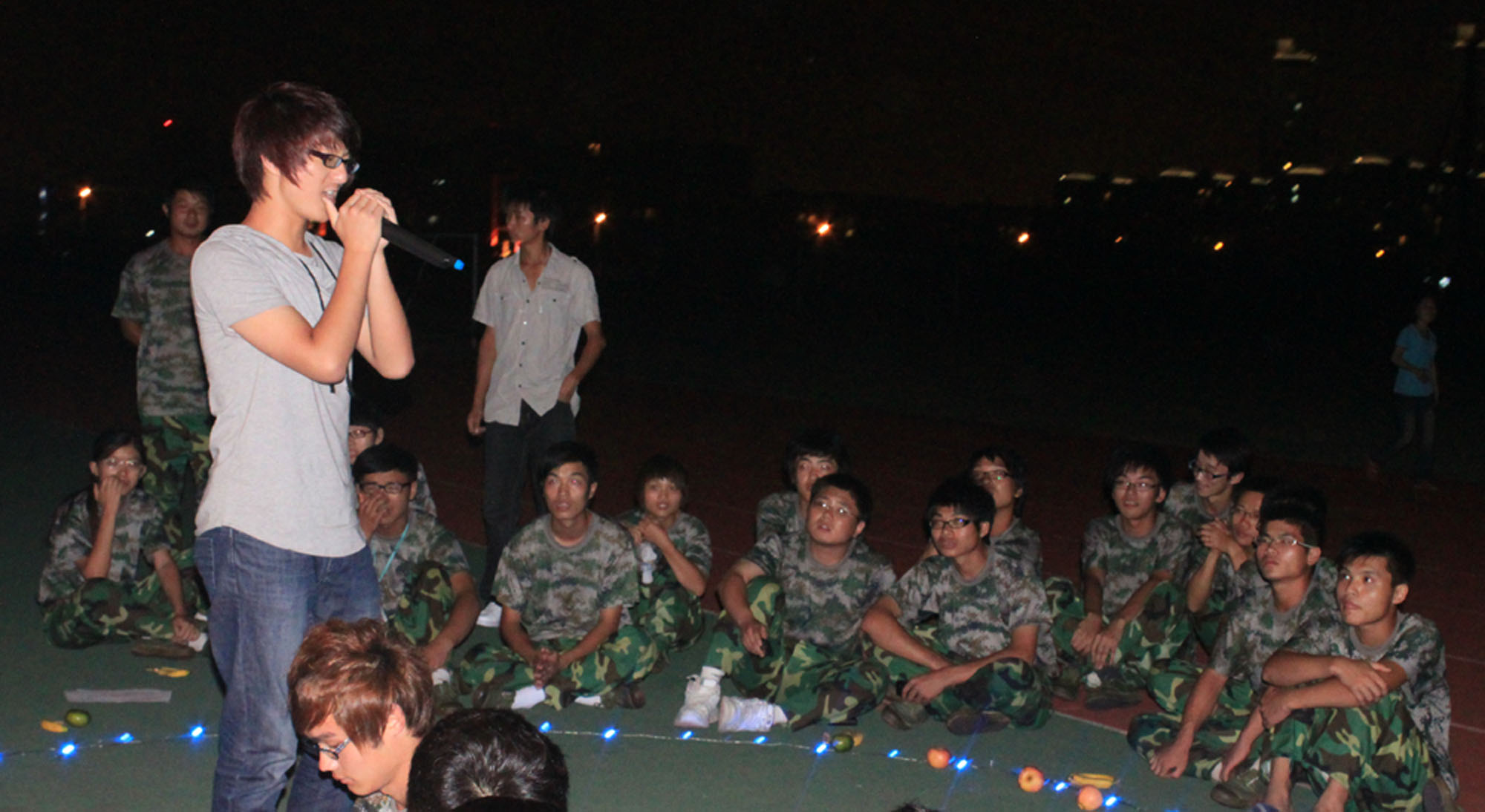 第二天的晚上进行了第二轮的面试活动。夜幕降临,在绚丽的装饰灯下,同学们围成一个圈席地而坐,开始第二轮的面试。这一次更加考验了他们的胆识,不仅需要面对更多的评委,还要面对其他一起进行面试的同学们。但是已经经历过一次面试的他们,都有了一定的经验,已经可以流利的回答评委们的问题了,能娓娓道来自己的独特见解。期间文娱部的成员还进行了一个精彩的表演。