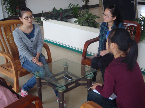 9月29日中午11:45在艺术楼大厅,我们采访了浙江省高职高专实用英语口语大赛非专业组三等奖获得者陈蔓莉学姐。