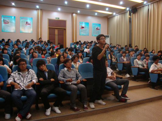 其中一位新生向王国安学长问到:在这一学年的学习与生活中,有没有后悔做过一件事,或后悔没去做一件事?而王国安学长很灵活的回答了这个问题,他说到:任何一件事如果你不去做那就会有50%的后悔机率,如果做了那就没有权利去后悔。所以以后遇到任何事,只要你想到了就去做,不要过多的去思考因为往往过多的思考会减少你做事的动力。有人说想到什么就去做那就是冲动,但是现在我们不正是冲动的时代吗!如果现在不冲动那要等到什么时候呢!听完王国安学长的回答后使在场的同学受益非浅。