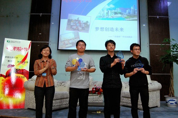 王彬,电气3083班班长,曾获08、 09学年院三等综合奖学金、优秀学生干部称号等荣誉。他最后一个上台,却依然显出一份淡定。他说,香港之行,首先是感受文化的冲突;其次是感受香港同学表现出‘我要学’的欲望;最后总结讲到这一段时间自己的自主能力增强了很多。他把港式同学这种自主学习能力分享给了大家:学会给自己课程安排、持之以恒、自信心。