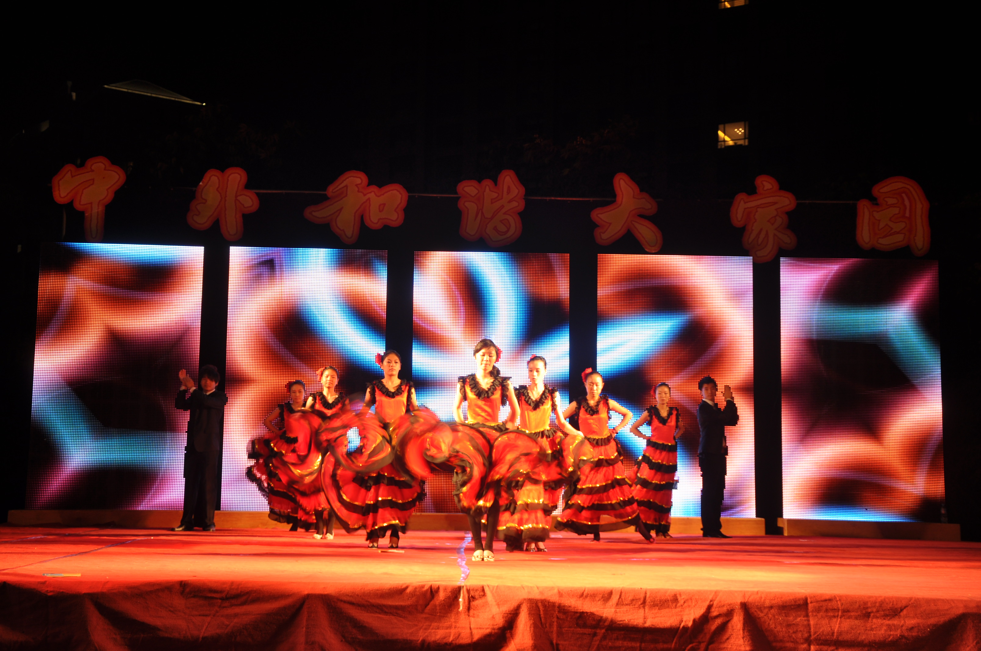 当来自宁波职业技术学院外语系的韩国籍外教金京玉老师牵着韩语学生的手,用韩文唱着《大长今》主题曲《希望》走上舞台时,玉兰社区的观众们为她们精彩的演出拍手叫好;当外语系西班牙语的学生和玉兰社区的外籍居民分别穿上中外民族服饰,走上一段“猫步”时,赢得了台下的掌声不断;外语系学生的三句半《香飘里仁》热情洋溢的表演,更是让中外观众赞不绝口……10月22日晚,北仑体育公园内歌舞飞扬,掌声雷动。由新?街道玉兰社区和外语系共同举办的“中外和谐大家园”主题晚会,为社区第三届中外家庭文化节划上了圆满的句号。外语系系主任周英华老师、党总支副书记沃意琳老师和一部分同学应邀参加了此次活动。
