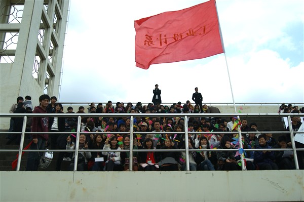 学生会信息部的各干事在部长的带领下拍摄运动员的“精彩瞬间”,不辞辛劳,只为了给运动员的辛苦付出留下纪念。生活监察部部长要求其部员为每位同学发放垃圾袋,以保持运动会看台的清洁。工业设计系学生会其他干部也都拿起小鼓,鼓动同学们为运动员加油。看台上的加油声此起彼伏,没有一刻停息。