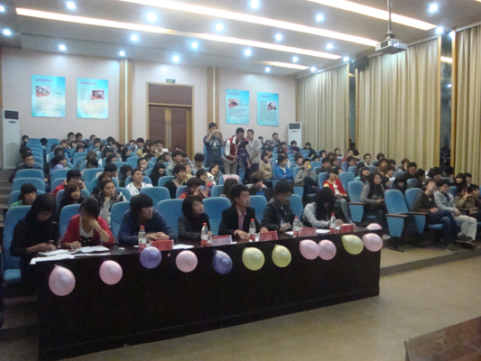 晚上6点,在主持人的介绍下,比赛正式开始。现场气氛十非火爆,整个现场被观看比赛的同学围了个水泄不通!观众席上的同学们热情高涨,欢呼声、呐喊声层出不穷。其中最积极,最热烈的就属那些歌手的亲友团们了,他们有的举着气球,有的拉着横幅,为所支持的选手卯足了力,将比赛的氛围推向了高潮,同时也给整个晚会增添了节日的气氛!