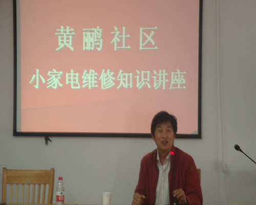 2010年11月4日下午1:30,由宁波职业技术学院电子信息工程系团委、学生会举办,宁波市北仑区黄鹂社区协办的《师生义务家电维修进社区――电子信息工程系张老师“家电维修知识讲座”》走进了黄鹂社区。此次活动,我们的志愿者与老师们以力求为人民群众排忧解难,服务社区,奉献社会为主旨所开展的.