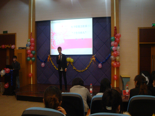 2010年11月4日晚上6:00,电子信息工程系“十佳主持人”总决赛在西校区小阶梯教室举行。电子信息工程系党总支副书记徐帆老师、电子信息工程系团委书记陈姜帅老师以及院广播台代理主任厉倩等担任本次比赛的评委工作。