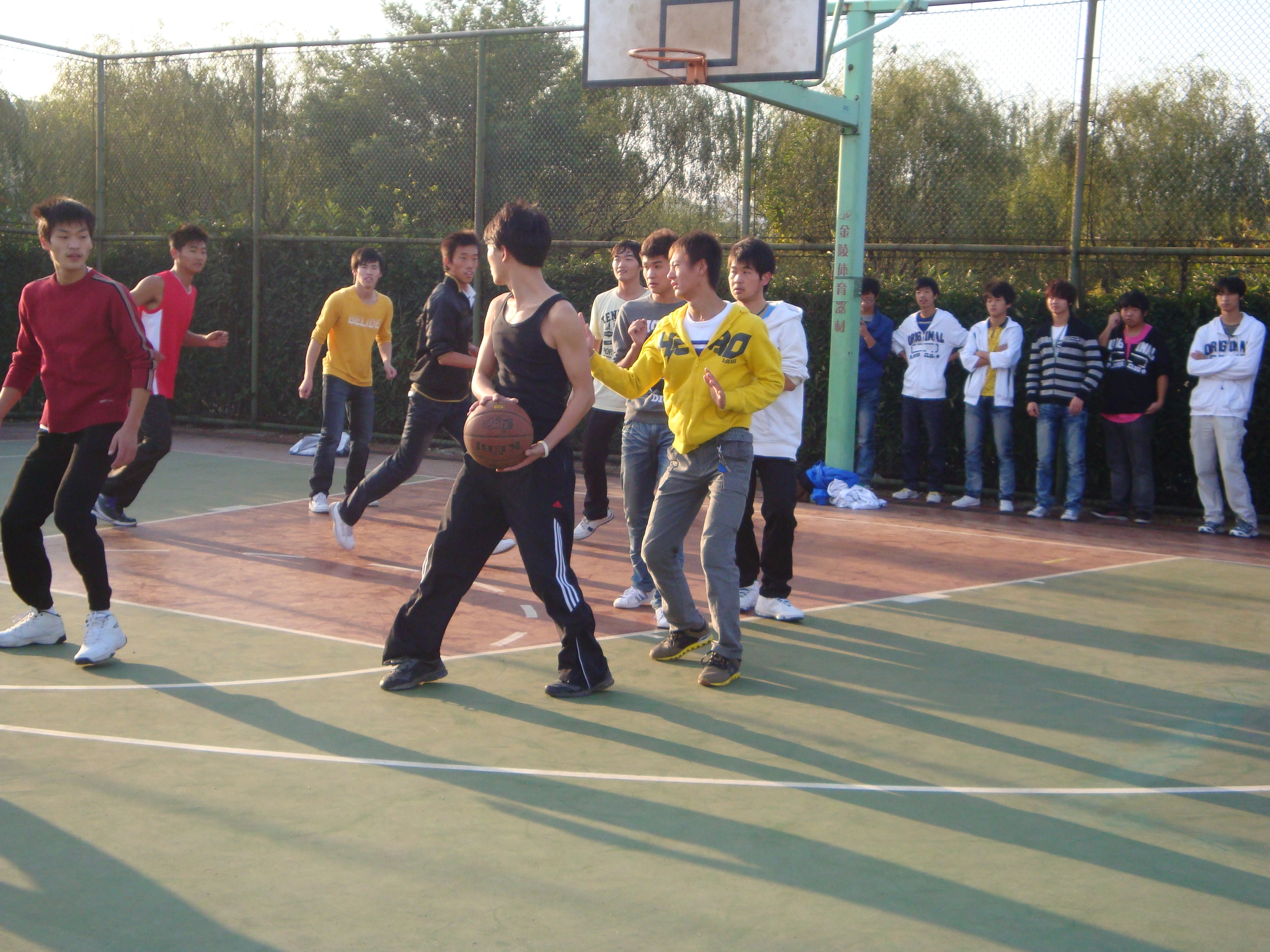 深秋的早晨气温有一点低,但同学们早早的来到了操场上。7点整,晨锻开始,由于场地的限制,并没有展开群体跑步。但化工系的同学们并没有想象中那么懒散,气氛也没有像空气那样的冷淡,整个运动场上弥漫着浓浓的运动气息。凭着这块仅有的场地,同学们分成几组进行锻炼,男生们展开了激烈的篮球比赛,激情四射。旁边的女生也不甘示弱,拿起了绳子,跳起了长绳,蹦蹦跳跳,一个接着一个,宛如一条欢快的小溪,神采飞扬。而这边男女生配合打羽毛球一直热闹着,欢呼声中羽毛球就像是一直脱缰的小鸟,穿梭在同学们的视线中。无论是篮球、跳绳、羽毛球,每位同学都在运动着,他们脸上的笑容,挥写着他们的朝气与蓬勃。