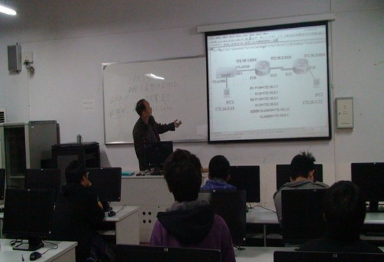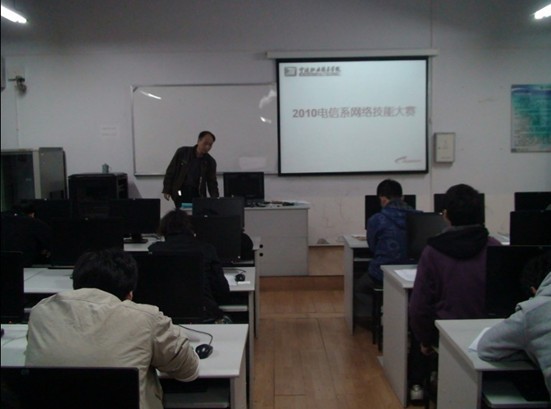 11月14日中午1:30分,在西校区5#201实训室举行了由电子信息工程系主办,锐捷网学院承办的2010宁波市首届大学生网络技能(分)赛总决赛。由电子信息工程系计算机大类专业老师竺师蒙老师和施吉鸣老师担任本次比赛的评委工作。