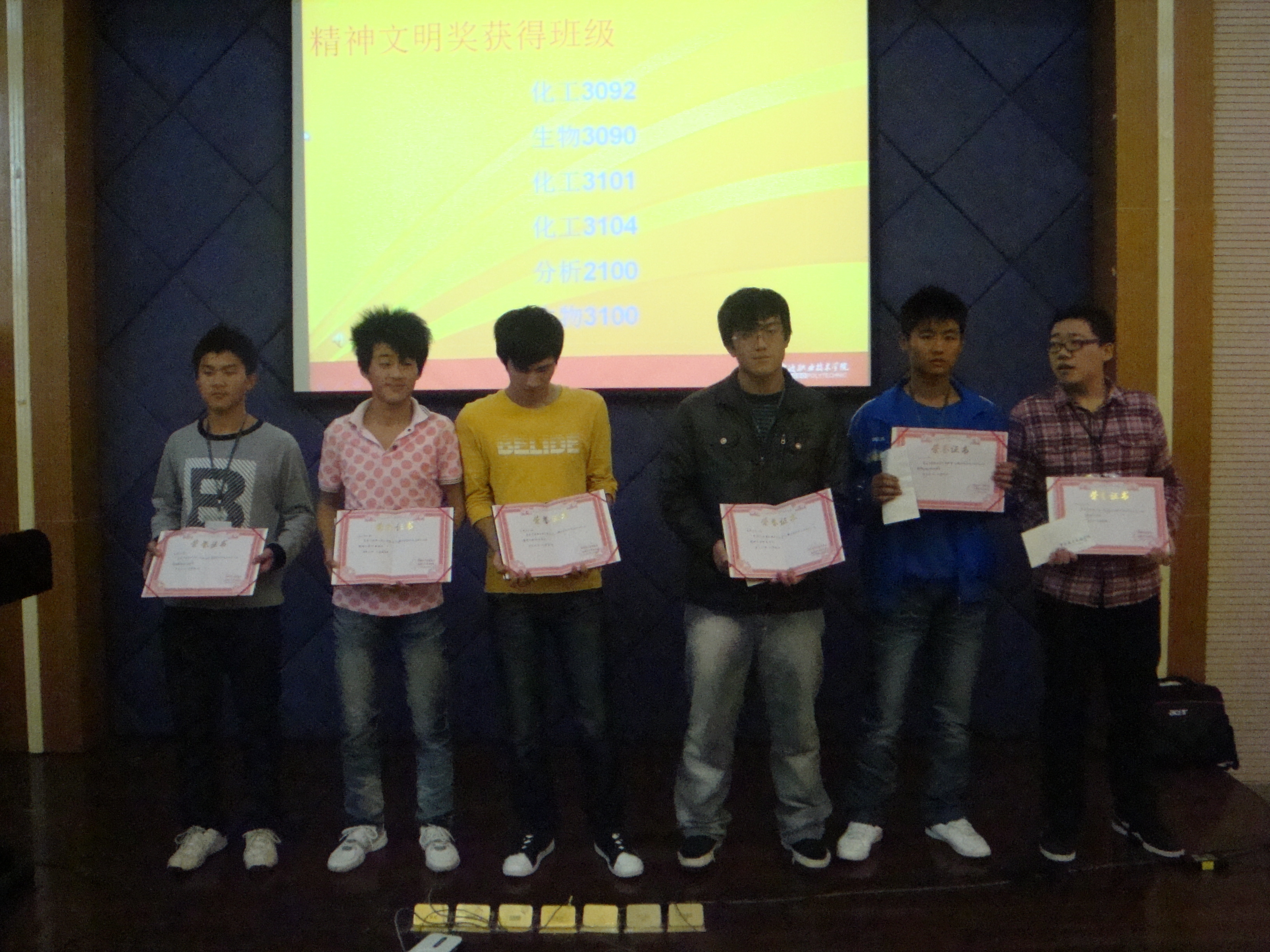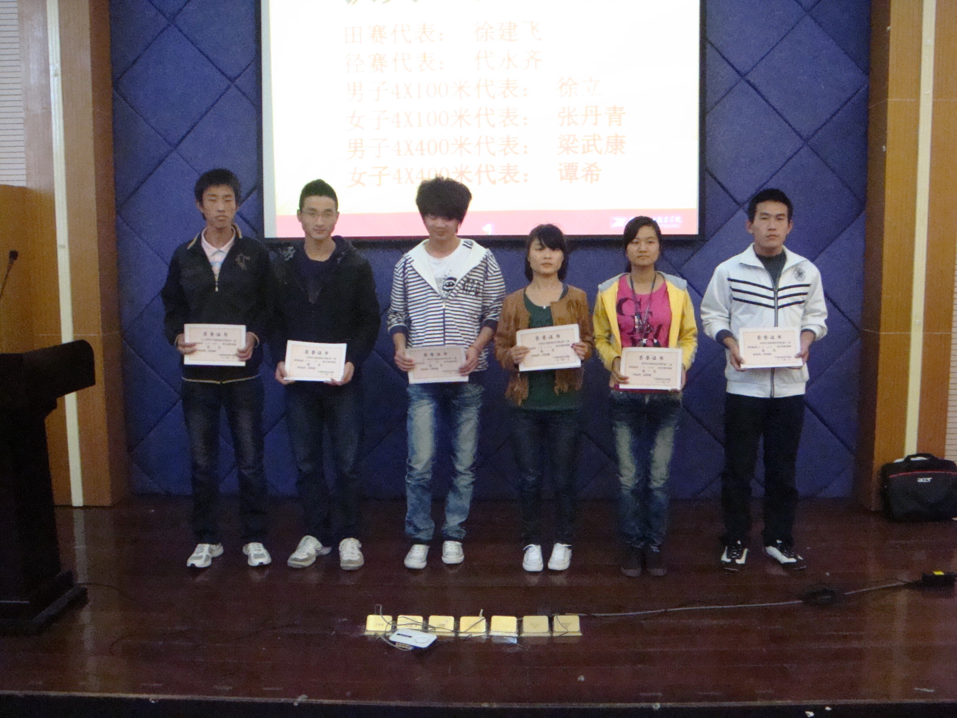 2010年11月11日中午12点30分,在宁波职业技术学院西校区阶梯教室召开了宁波职业技术学院第十二届运动会表彰大会暨应用化工系运动会总结大会。参加本次大会的有党总支副书记戚音老师、团委书记童燕老师以及各班班主任。