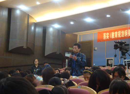 为了给在座大学生给予实质性的帮助,主持人提出互动环节。让在座的同学们举手发言提出自己想问的问题。其中来自物理管理班的同学向宁波银亿集团有限公司办公室主任黄金龙先生提出问题:现在专科生就业压力大,学历低,社会需要高技术人才,觉得专科生容易受到歧视?