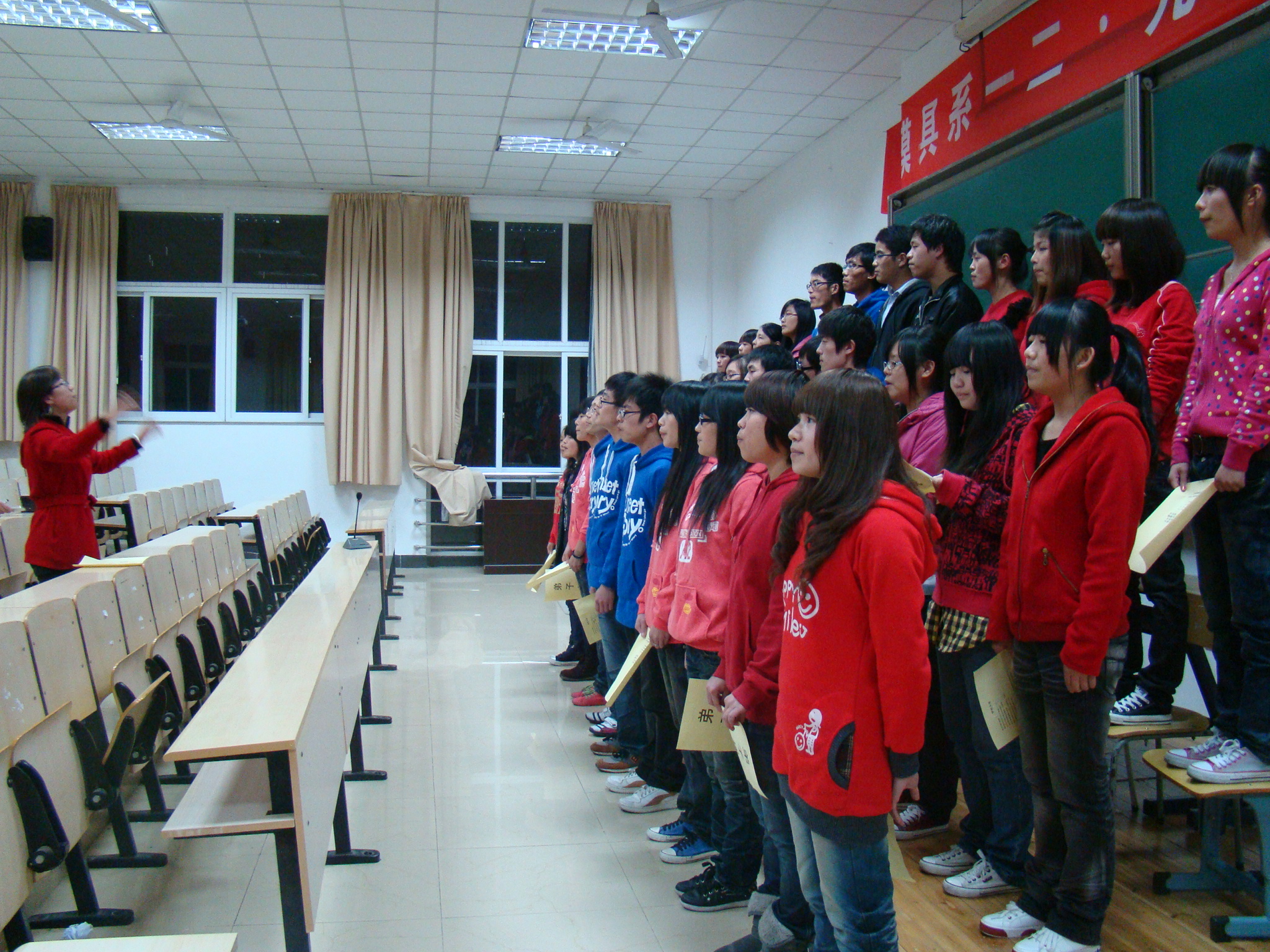 为了纪念一二?九学生运动75周年,引导模具系学生进一步了解历史,铭记历史,增强学生的爱国热情和班级的团队精神,模具系学生会于11月25日晚6点在精技楼503教室组织开展了一二?九大合唱比赛,通过各班的激情合唱突显了本次比赛的主题“回首峥嵘岁月,放飞青春歌声”。