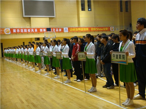 11月27号晚上6:00,浙江省第十三届大学生运动会乙组篮球赛开幕式在宁职院顾国华体育中心隆重举行。