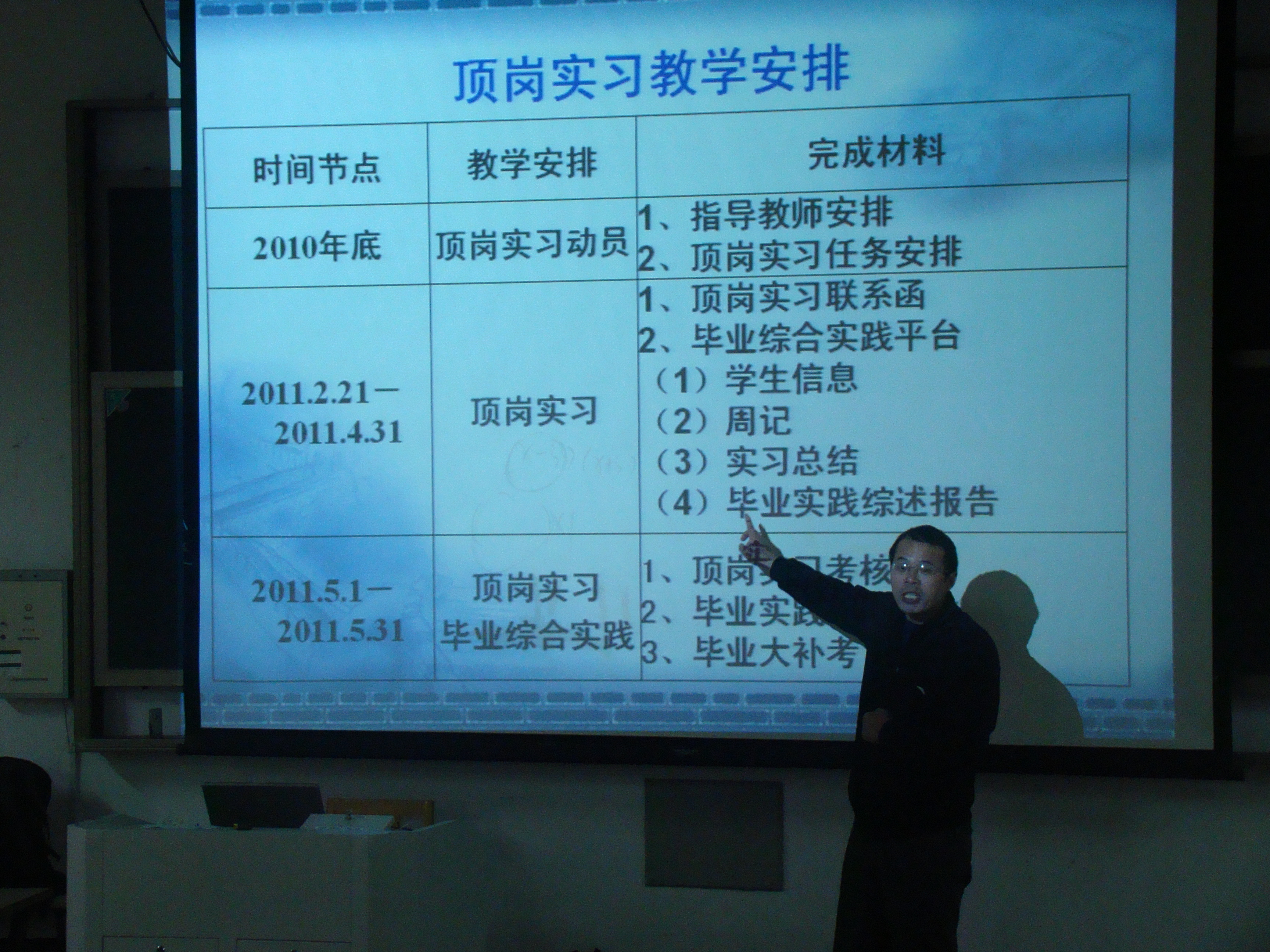 近一个小时的顶岗实习动员会结束了,学生更加了解顶岗实习,也清楚了顶岗实习期间的任务。方向明确了,前进就更加顺利了,相信学生一定可以在顶岗实习中取得骄人的成绩。