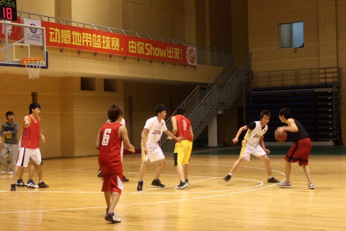 工商管理系一队抢攻妙传,用精妙的配合率,夺下二队打至篮球框缘的球,接着,手握篮球的队员一个漂亮的旋转将球潇洒的抛入篮框。而二队的队员也不甘示弱,凭借着个人的高超球技,严密防守,不给一队占到篮球的空隙,连进两个3分球。期间,一队分数遥遥领先,毫不松懈,二队队员咬紧牙关,互相鼓励、交流:“快,这边这边,后方防守,直进杀球……”两个队的激烈对决,全场high到极点。上半场结束,一队险胜,中场休息。随着下半场在同学们的呐喊助威声开始,比赛一次次的被推向高潮,而一队在下半场表现尤为突出,在第四节中,尽管二队奋力追赶,但是一队全面爆发,凭借严密的防守、有组织的进攻,始终占据上风,最终以96比79的好成绩顺利赢得比赛。
